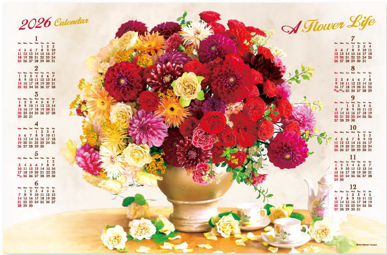 色鮮やかなお花が、お部屋を彩り、見る方へ元気をお届けできるインテリアカレンダーです。