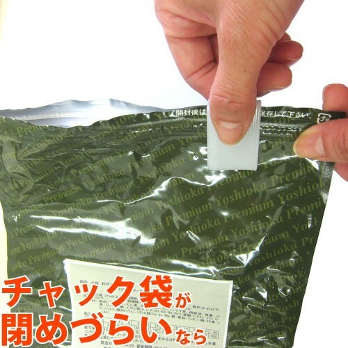 袋のチャック閉めお助けアイテム 袋のチャック部分は、開閉を繰り返すことで次第に閉めづらくなってしまいます。また、開閉の距離が長い場合などで閉めたつもりでもちょっとだけ開いていたり、うまくチャック同士が合わさらず閉めるのにて手間取るとはありませんか?チャックが開いたままで保管することは、酸化が早まる大きな原因に。