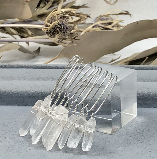 水晶 ヘアアクセサリー 氷柱水晶 結晶 ヘアコーム 銀色 10本足 ナチュラル 天然石 パワーストーン 氷柱カット 氷柱クリスタル 結婚式 成人式 入学式