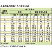 たんぱく質 18.5%以上、脂質11.5%以上、粗繊維5.0%以下、灰分8.0%以下、水分10.0%以下