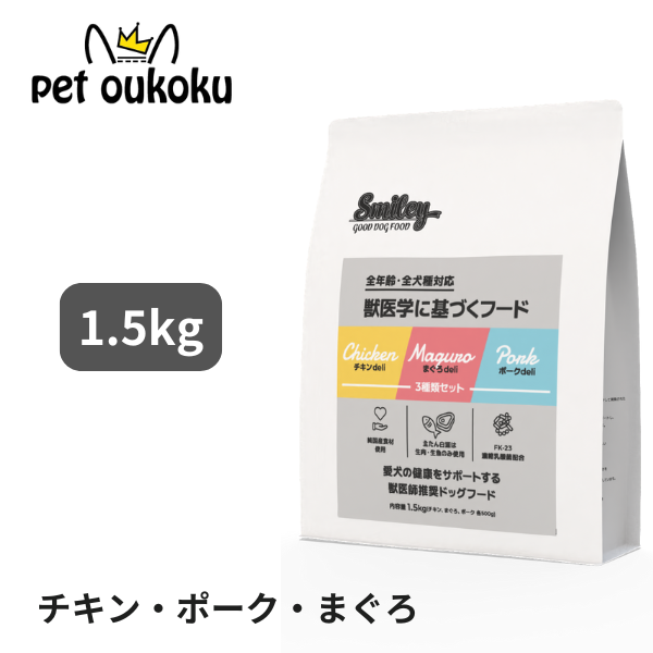 スマイリー ドッグフード 3種セット(チキン・ポーク・まぐろ) 1.5kg(500g×3) 4562305934214