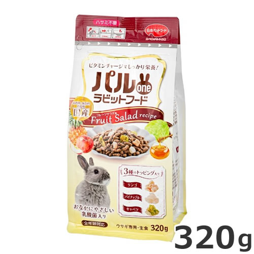 ・ウサギが大好きなリンゴ、パイナップル、キャベツの3種類の乾燥果物&野菜をトッピングし、おいしさと栄養をプラスしました。