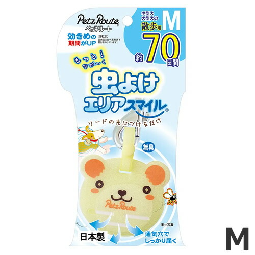 【メール便】【数量限定価格】ペッツルート もっと虫よけエリアスマイル 70日 M くま 中型犬 大型犬用 虫除け 散歩 送料無料