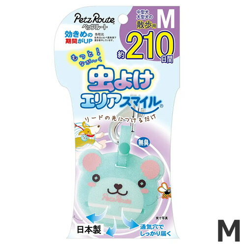 【メール便】【数量限定価格】ペッツルート もっと虫よけエリアスマイル 210日 M 中型犬 大型犬用 虫除け 散歩 送料無料