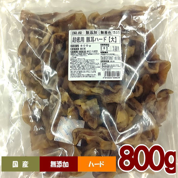 犬 おやつ 無添加 超お徳用 豚耳ハード800g(大きいカットタイプ)業務用 規格外 激安 国産 ジャーキー 豚ミミ ブタミミ 長持ち 歯石ケア 歯磨き 歯みがき ガム