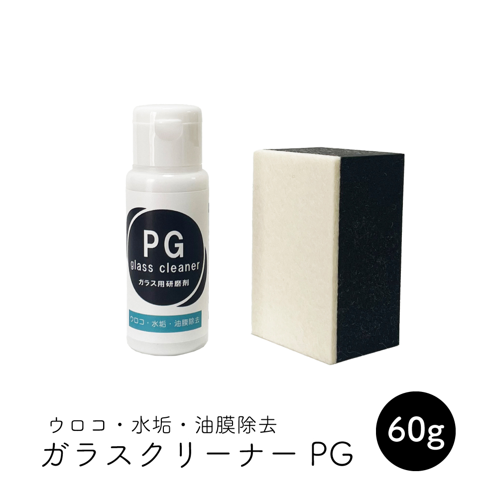 ダイヤモンド粒子配合 ガラスクリーナーPG 60g (研磨用パット付)鏡・ガラスの水垢・ウロコ取り、油膜取り 強力液体タイプ