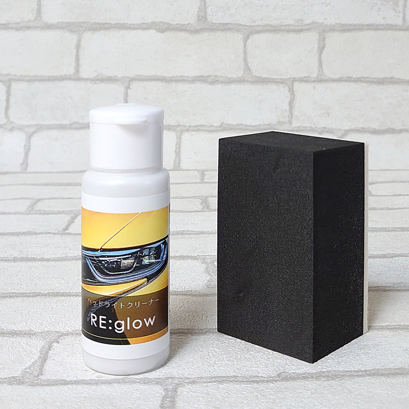RE:glow ヘッドライトクリーナーはライトを新車級の輝きに戻す研摩剤です。