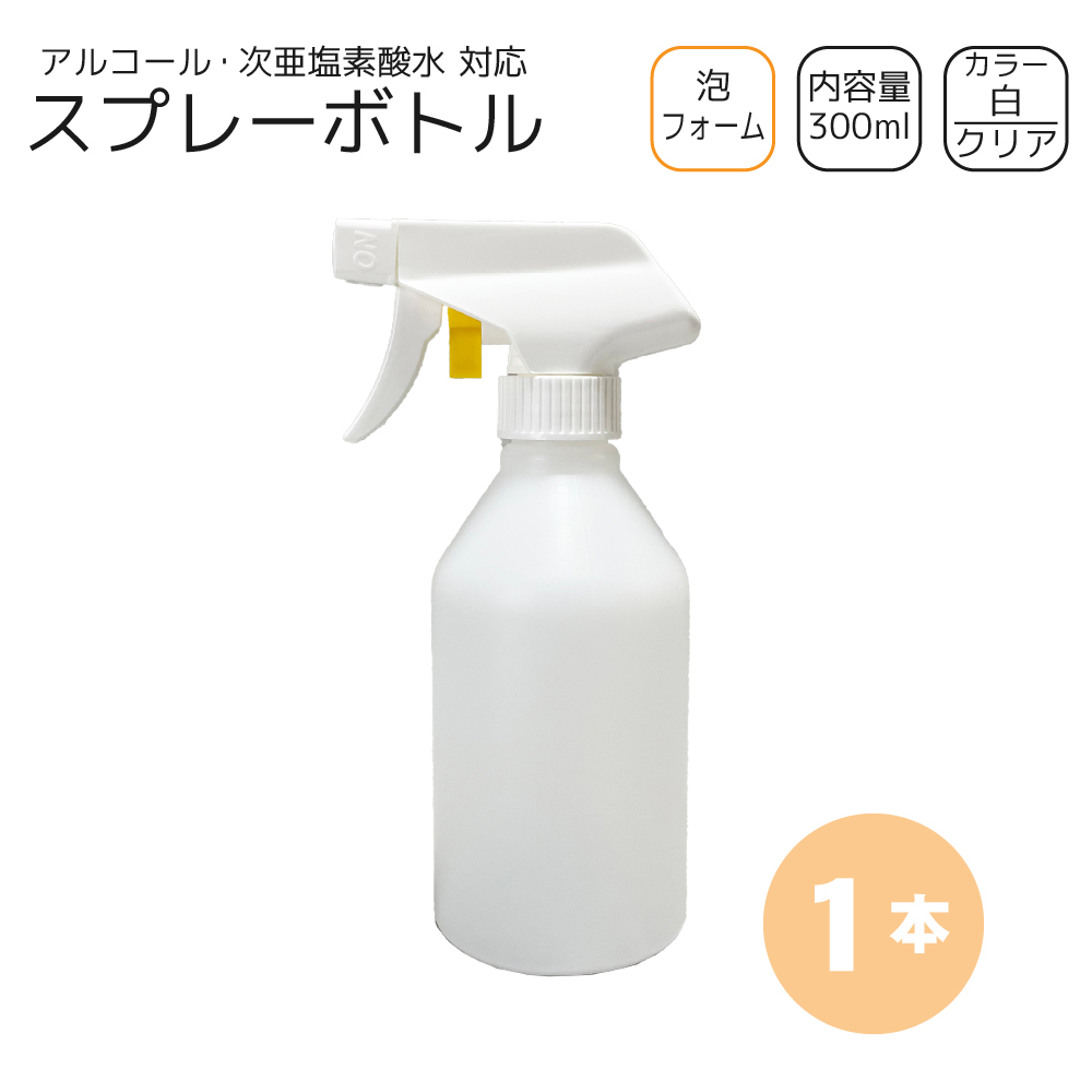 泡スプレーボトル 300ml×1本 [トリガー:白/ボトル:クリア] 洗剤・次亜塩素 対応 フォーム ガンボトル 詰め替え容器