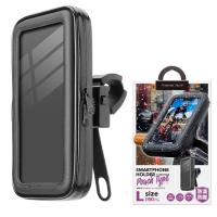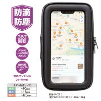 防滴・防塵設計で急な雨でも安心な自転車用 スマートフォンホルダー(ポーチタイプ/Lサイズ)です。収納も簡単なポーチタイプで、水滴や埃からスマートフォンを守り、タッチ操作も可能です。また、取り外しできるステーを採用し、ポーチに入れたまま持ち歩き可能です。360°回転する為、シーンに応じて最適な角度に調整が出来ます。ハンドル部へ固定はフレキシブルステーで簡単に取り付け・取り外しが可能です。※対応スマートフォンサイズ:横幅〜90mm×高さ〜170mm×厚み〜15mm。※対応ハンドル径:20〜40mm
