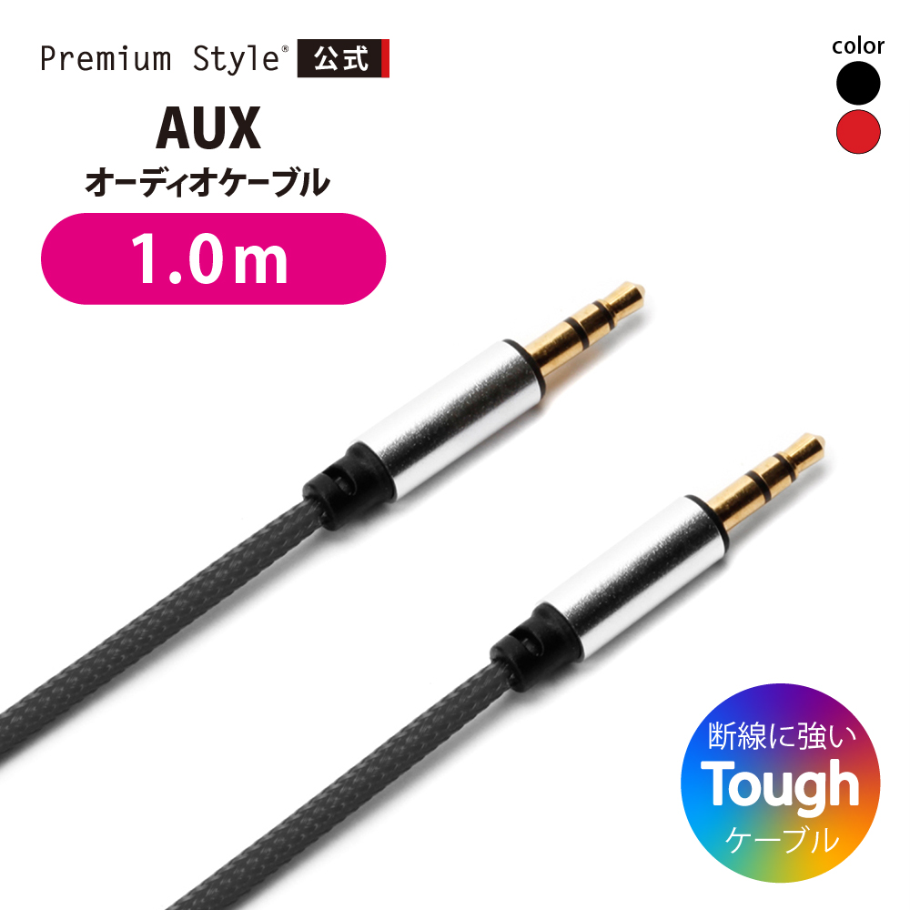 PG-AUX10M11BK PG-AUX10M12RD 4573540882130 4573540882147 タフ 1m ブラック レッド 音響 メッシュ 絡みにくい AUX ケーブル オーディオケーブル ステレオミニプラグ タフケーブル 黒 赤