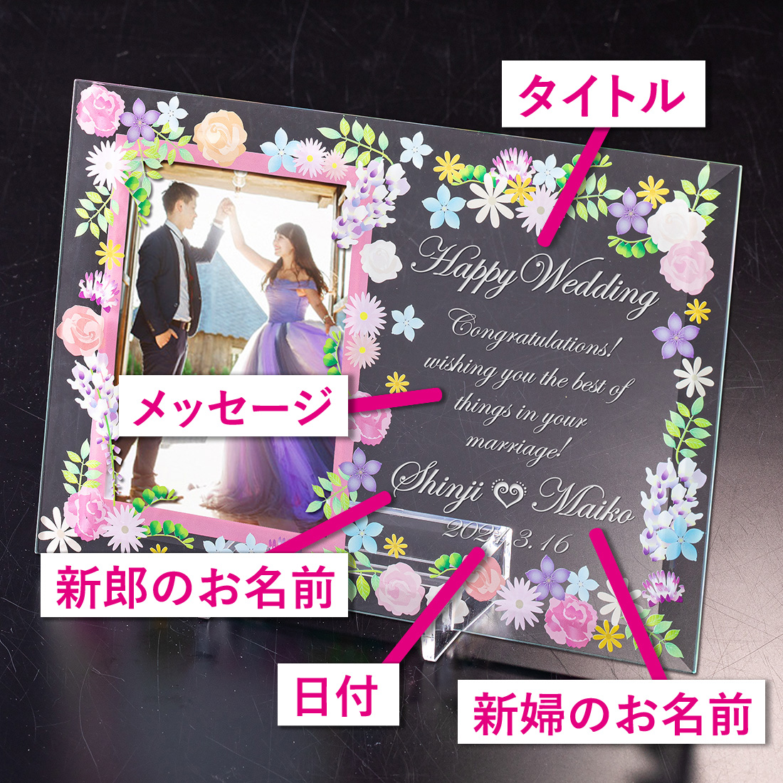 名入れ プレゼント 花 花柄 デザインフォトフレーム 写真立て 結婚祝い クリアガラス フラワーデザイン 写真 L判 サイズ ウェディング 結婚記念 内祝い
