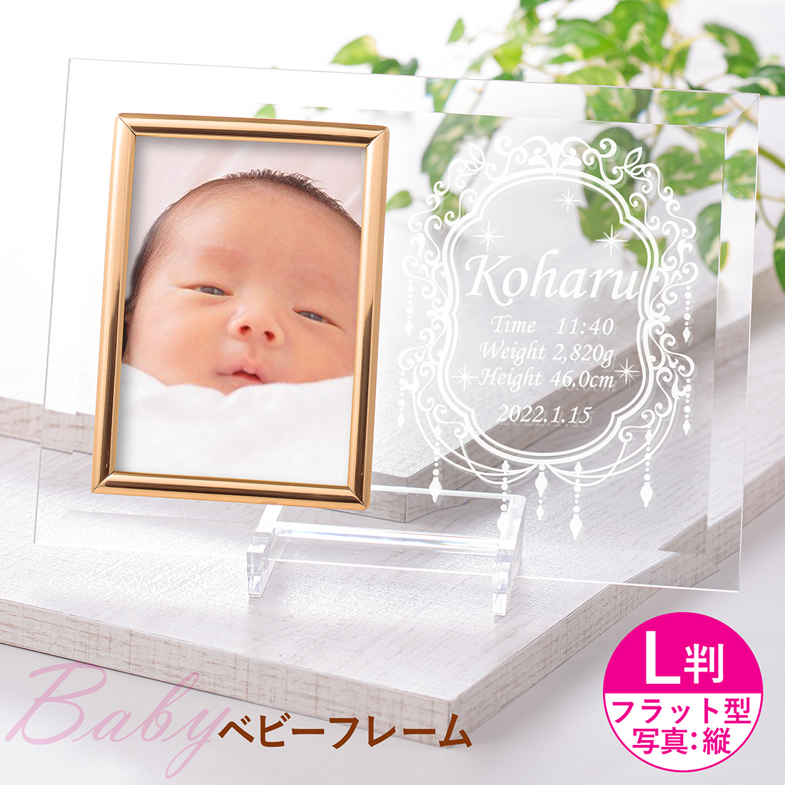 名入れ 写真立て 出産祝い 赤ちゃん ベビー クリアガラス フォトフレーム (写真縦向き・フレームフラットタイプ) プレゼント 誕生日 内祝い オリジナル 記念品