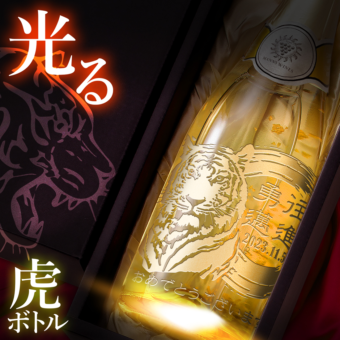 名入れ 光る スパークリング ワイン プレゼント 虎 虎デザイン タイガー シャンパン スパークリングワイン 誕生日 結婚祝い 金箔入り 還暦 退職 定年 周年記念
