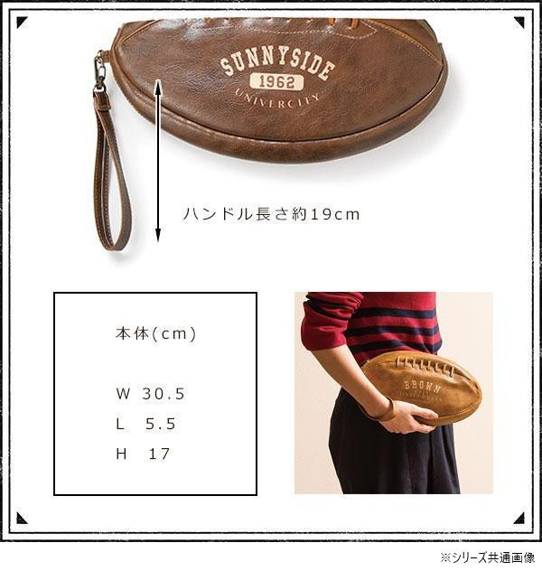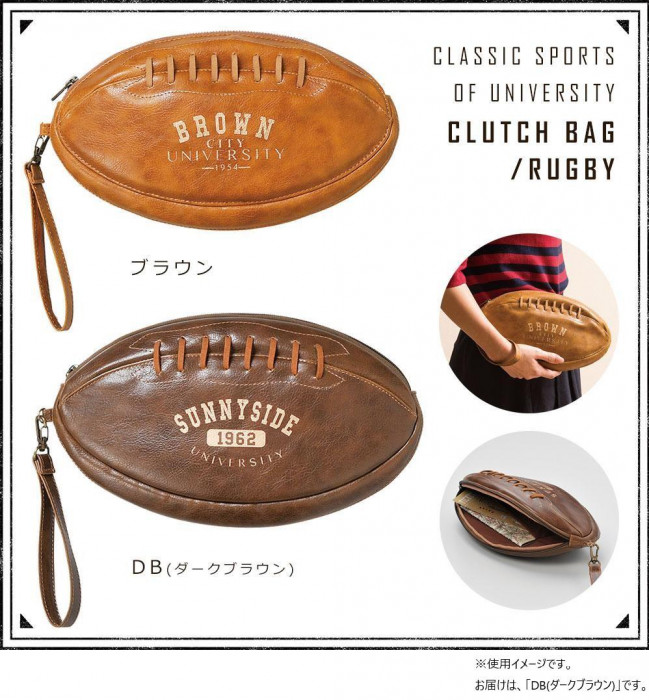 ラグビーボールをリアルに再現した、楽しいクラッチバッグです。