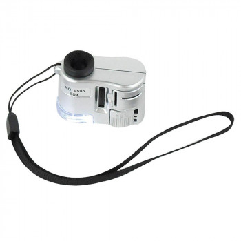 60倍のボケット顕微鏡でLEDライト付。さらに鑑定などに役立つブラックライトも装傭しています。