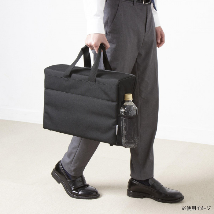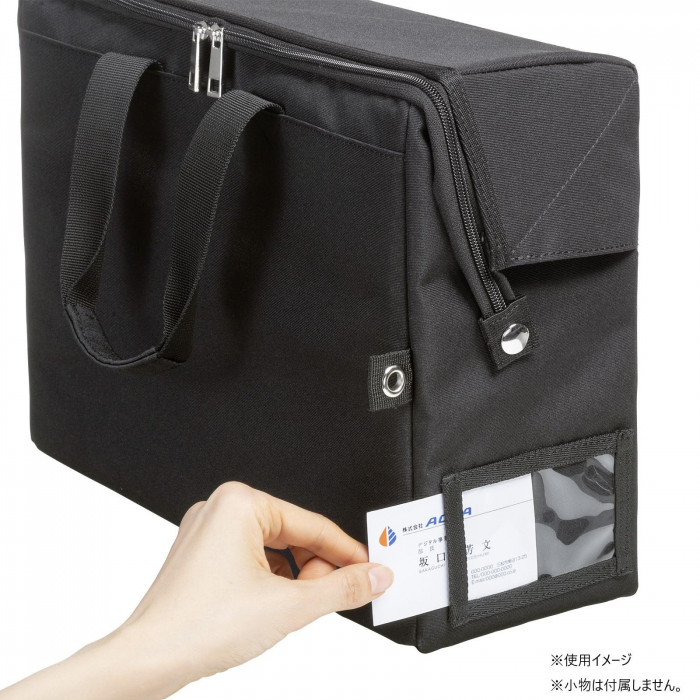 | 場所を取らないスライドオープン式のフタでスムーズな出し入れが可能です。2サイズの仕切り板で書類だけでなく小物を分けて収納できます。 ・ワイヤーが通せるセキュリティホール付きです。 ・芯材入りでしっかり自立するので保管にも便利です。 ・外側にはペットボトルも収納できるポケット付きです。 ・ネームホルダーに名刺を入れて個別管理ができます。 |