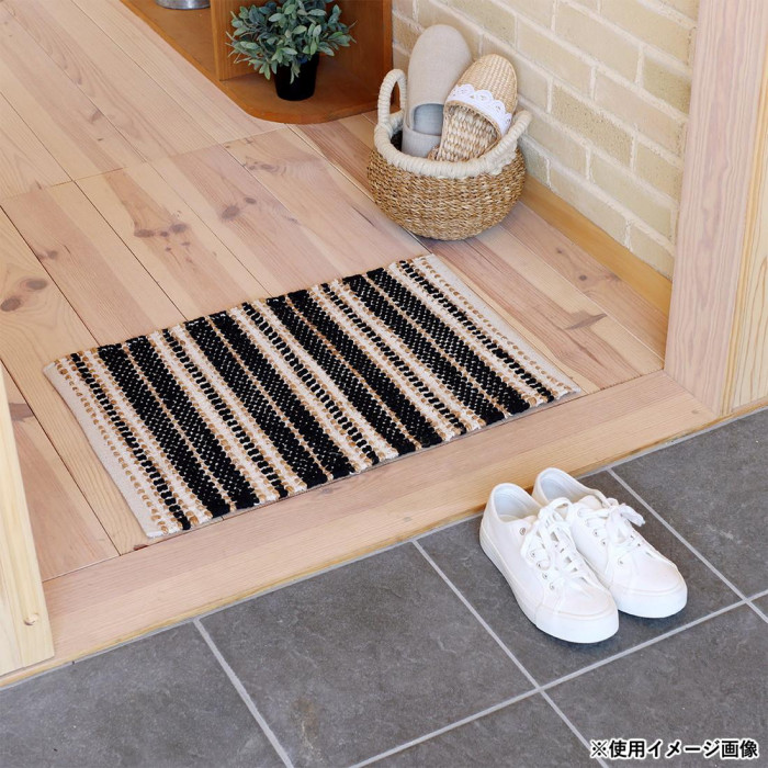 異なる厚みや素材のコットン生地とジュートが組み合わさり、でこぼことした質感が魅力です。どんなお部屋にも馴染むナチュラルなマットです。