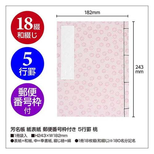 郵便番号枠付き、和綴じの芳名帳です。披露宴や結婚式、二次会などのお祝い事や、同窓会や囲む会やパーティなどの受付に。民宿やフィールドワークなどの宿帳に。展示会、展覧会、セミナーの受付に。ご列席のお客様名を大切に保管します。5行書きで180名分記名できます。