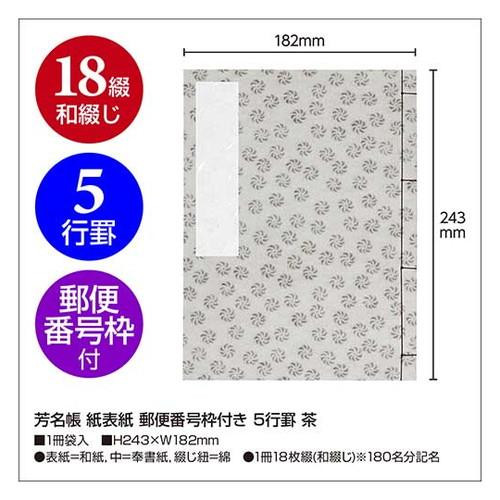 タカ印 芳名帳 紙表紙 郵便番号枠付き 5行罫 茶 31-143