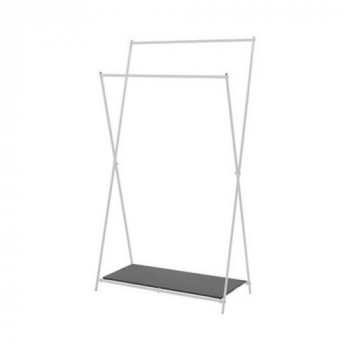 コンパクトで軽く、どこにでも持ち運べる大容量のフォールディングハンガー。ショップのディスプレイのようにお気に入りの洋服や小物を飾って収納ができます。2本のポールで抜群の収納力。前後で高さが異なるので、掛けやすく取り出しやすいデザインです。下段は箱や小物が置けるラックが付いています。