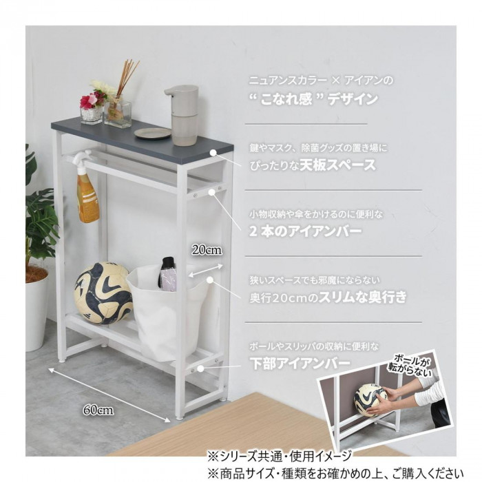 | エントランスや廊下、リビングで大活躍します。廊下やリビングでの観葉植物や鍵などの置き場としても。ちょっとした置き場所が欲しい時に便利なコンソールテーブルです。上下に2本のバーがあるので小物や傘の収納、ボールやスリッパの収納にもお使いいただけます。 ※北海道・沖縄県・離島は別途送料発生いたします。 ※商品出荷後のキャンセルにつきましては、キャンセル料が発生いたします。キャンセルの場合は出荷前に早期ご連絡をお願いいたします。 |