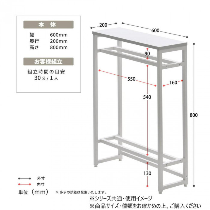 | 仕様 | サンド塗装 耐荷重(天板):約15kg 組立(1人):約30分 |