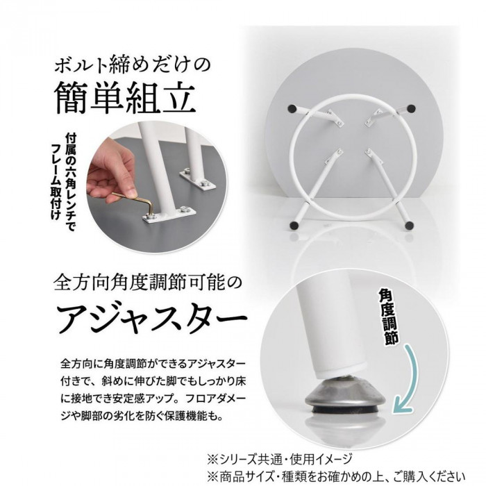壁付け設置を可能にし、省スペースを実現したカフェテーブルです。天板の中央部から放射上に伸びた4本の脚は安定性とスタイリッシュな印象をプラスします。カフェテーブルとしての使用以外にも1人用のダイニングテーブルやパソコン作業スペースとしても安心してご使用頂けます。