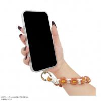 スマホケースに挟むだけで使用可能な落下防止ハンドストラップ。手編みの花デザインがかわいい。ハンドストラップ部分は鍵やポーチなどに付けてキーホルダーとしても使用可能。