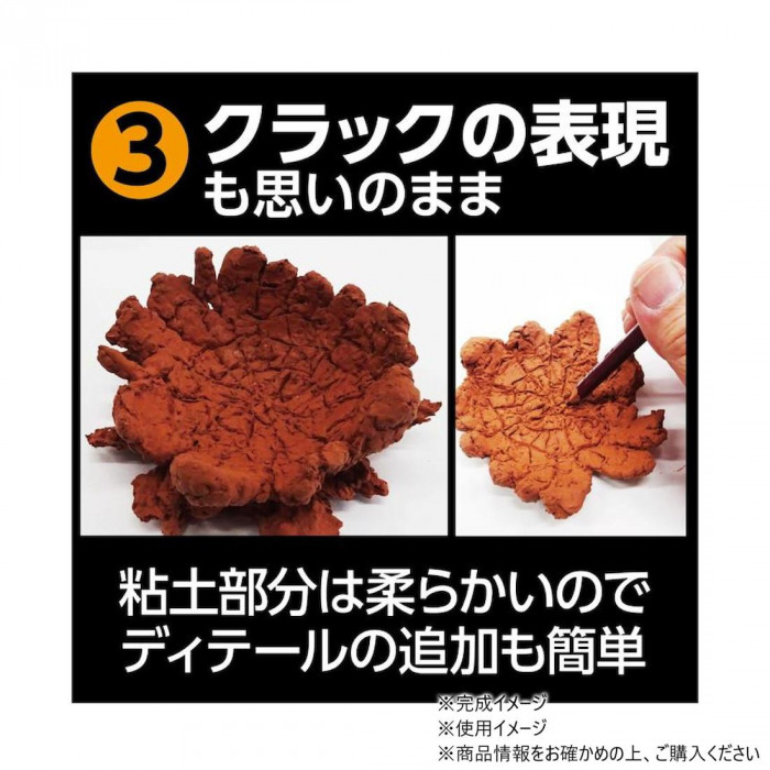 手軽に本格的なジオラマ製作に活用できる造形粘土です。小スケールのジオラマ制作に向いた粒の細かいタイプ。自然乾燥で固まります。