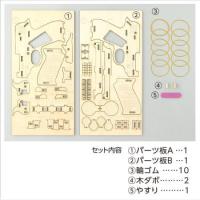 | セット内容 | パーツ板A×1、パーツ板B×1、輪ゴム×10、木ダボ×2、やすり×1 |