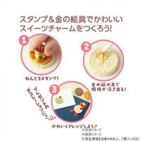 | セット内容 | つぶつぶねんど(デザートクレイ)×1、絵の具(金)×1、スタンプ×1、ボールチェーン×2、ヒートン×2、綿棒×1、木工用接着剤×1、保存袋×1 |