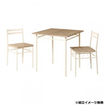 スチールのフレームがシンプルでどんなお部屋でもコーディネートしやすい組立式ダイニングセットです。コンパクトながらも程よいサイズ感で、限られたスペースにも最適です。