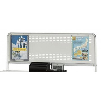 KDS用記載台用掲示ボードです。表示部はスチール製なのでマグネットが使えます。付属のパンフレットケースとペーパーロック(W210mm)で販促チラシや注意事項をマグネットがなくても表示することができます。