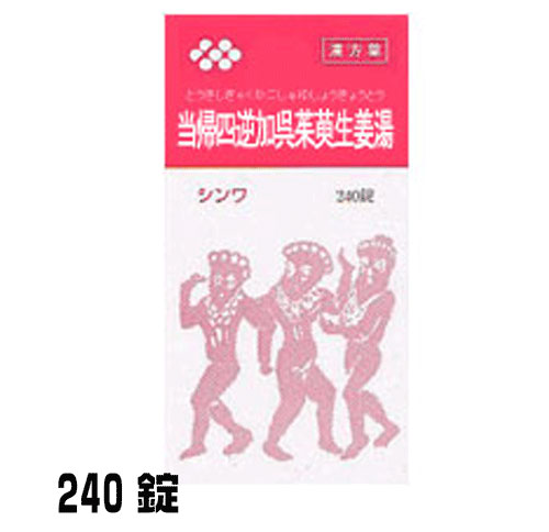成分・分量 (12錠中) | 「日局」トウキ1.5g、「日局」カンゾウ1.0g、「日局」ケイヒ1.5g、「日局」タイソウ2.5g、「日局」シャクヤク1.5g、「日局」ゴシュユ1.0g、「日局」モクツウ1.5g、「日局」ショウキョウ0.5g、「日局」サイシン1.0g 上記生薬より得た帰四逆加呉茱萸生姜湯エキス1800mgを含みます。
