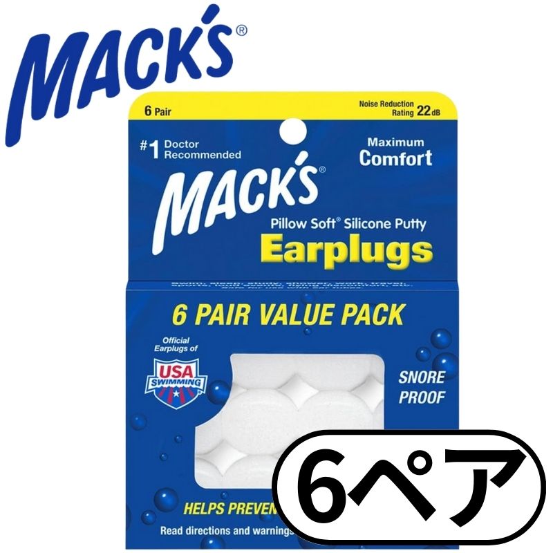 NRR22の高い遮音性能を持つ「Mack's Pillow Soft」は、柔らかいシリコン素材で耳の形にぴったりフィット。