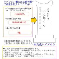 ※こちらの商品は本体前面に文字を彫刻してのお届けとなります。ご注文時に「ペットのお名前」(かな・漢字のみ)、「命日」(※令和七年一月七日など)、「享年」(亡くなった時の年齢)をオプション欄または備考欄にご記入ください。なお、縦書きのためお名前はかな・漢字のみ、年月は和暦のみ、彫刻書体は楷書体のみとなります。