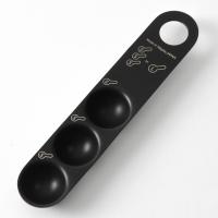 小さじ1が3つ付いたコンパクト計量スプーンです。全体で大さじ1の分量を計れます。従来バラバラでガチャガチャし、洗い物も増えて面倒だった手間から解消されます。汚れが付きにくいフッ素加工なので、水切れも良く手早く違う材料を計ることができます。目盛表示はレーザーマーキングを採用しており、使用していて剥がれてくる心配がありません。