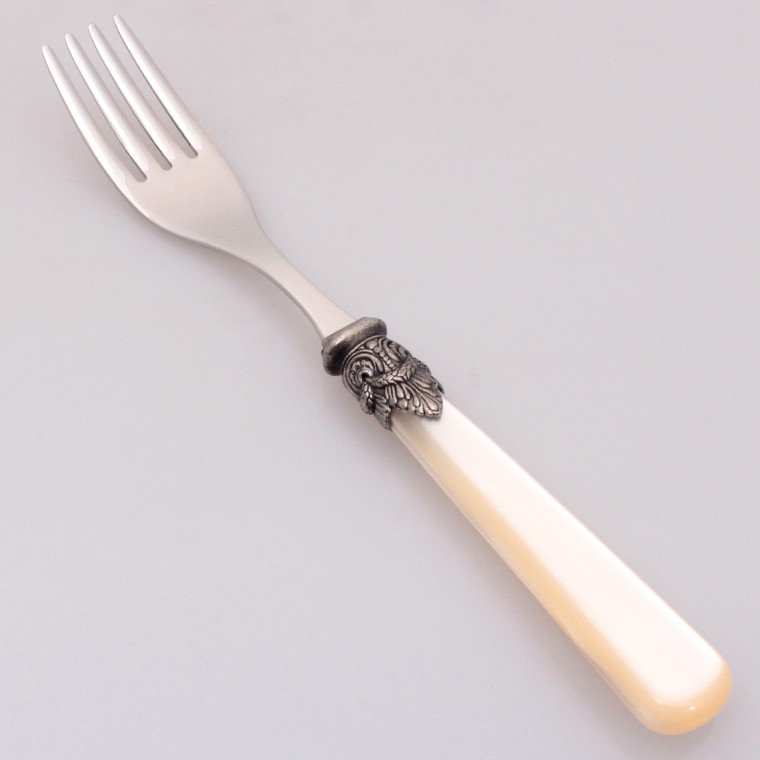 ヨーロッパ有数のカトラリーメーカーEMEはイタリアのミラノ郊外にあります。食洗器が使える高級アクリル樹脂のハンドルは、大理石のような高級感があります。飾り金具は鋳型鋳造で作られており、細部まで彫が深く美しい仕上がりになっています。意外に揃えやすい価格帯というのも魅力の一つです。