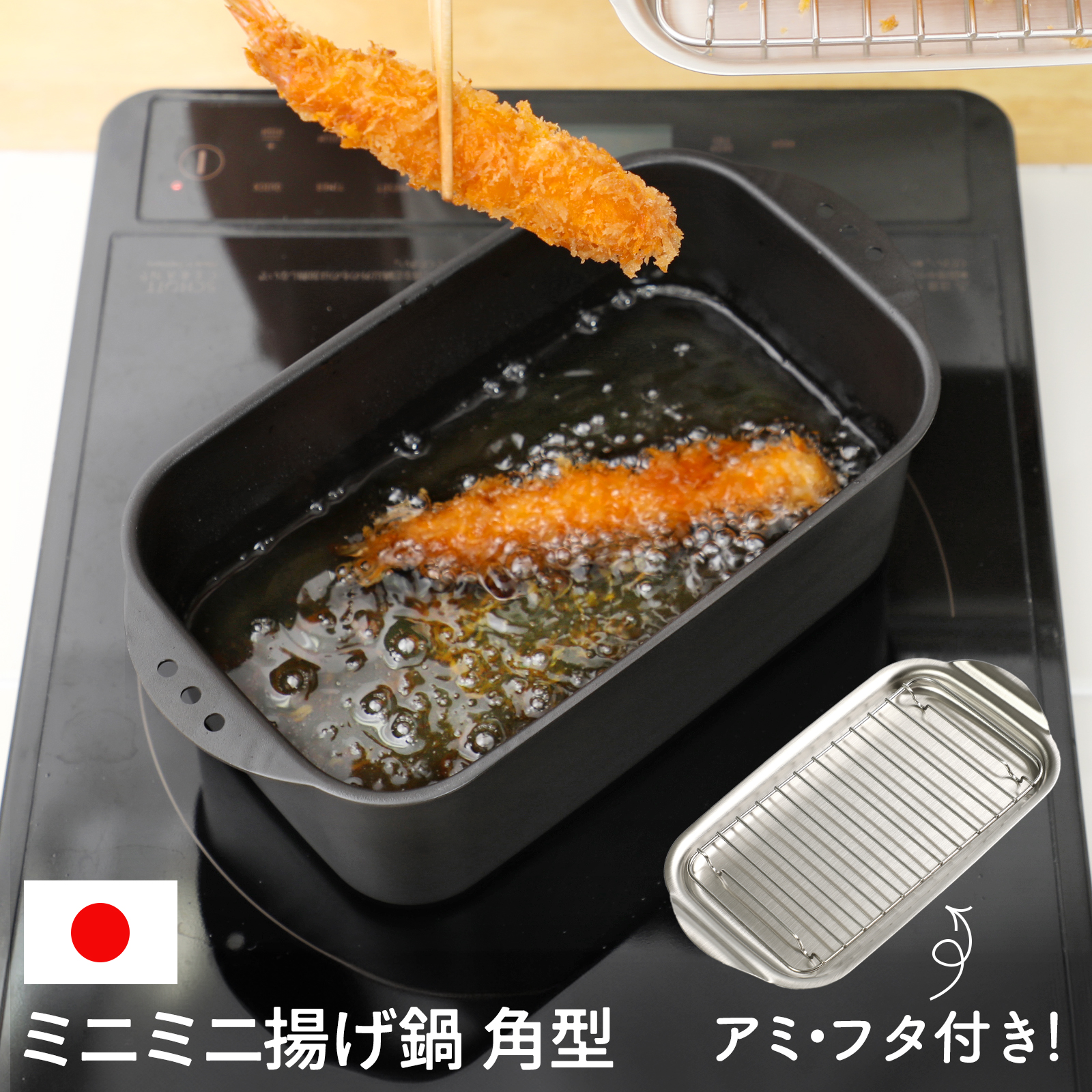 関連キーワード:天ぷら鍋 揚げ鍋 鉄なべ 鉄鍋 揚げアミ ふた付き 揚げ物 IH対応 セット 日本製 made in japan コンパクト ミニ 弁当用 収納 一人暮らし フライヤー 卓上フライヤー 卓上 卓上IH 串揚げ パーティ 串揚げセット 串カツ 角型 スクエア 長方形 鉄 小さめ 小型 オイルポット フッ素 取っ手も場所を取らない バット ブラック トンカツ 唐揚げ エビフライ 春巻き 横長 取っ手付き アミ付き 下ごしらえ 油切り