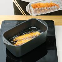 コンパクトだけど本格派の便利な鉄揚げ鍋です。長方形だから少ない油でもしっかりと揚げられて収納の便利。