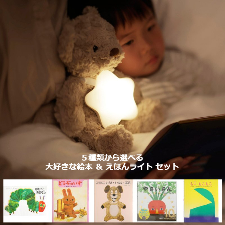 マーナ 絵本ライトとお気に入りの絵本セット 選べる絵本5種類 箱入り お星様ライト 出産祝い