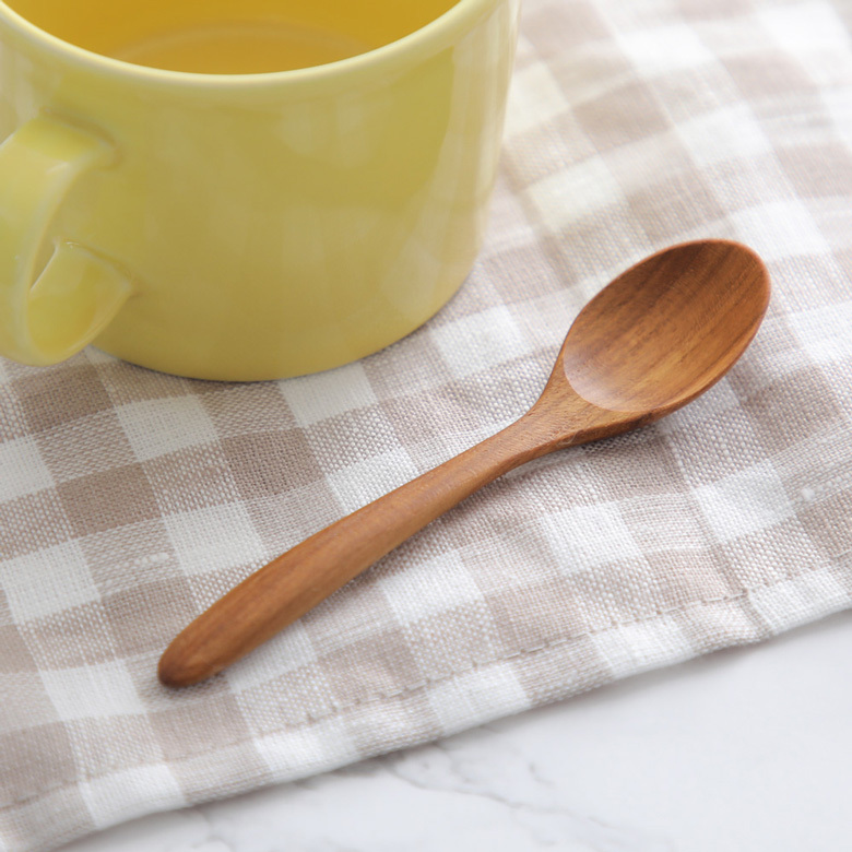 食べ口がきちんと薄くつくられており、口当たりがスムーズ。デザイン性も高く、木材でありながらどこかスタイリッシュな雰囲気。子供用もかわいい。