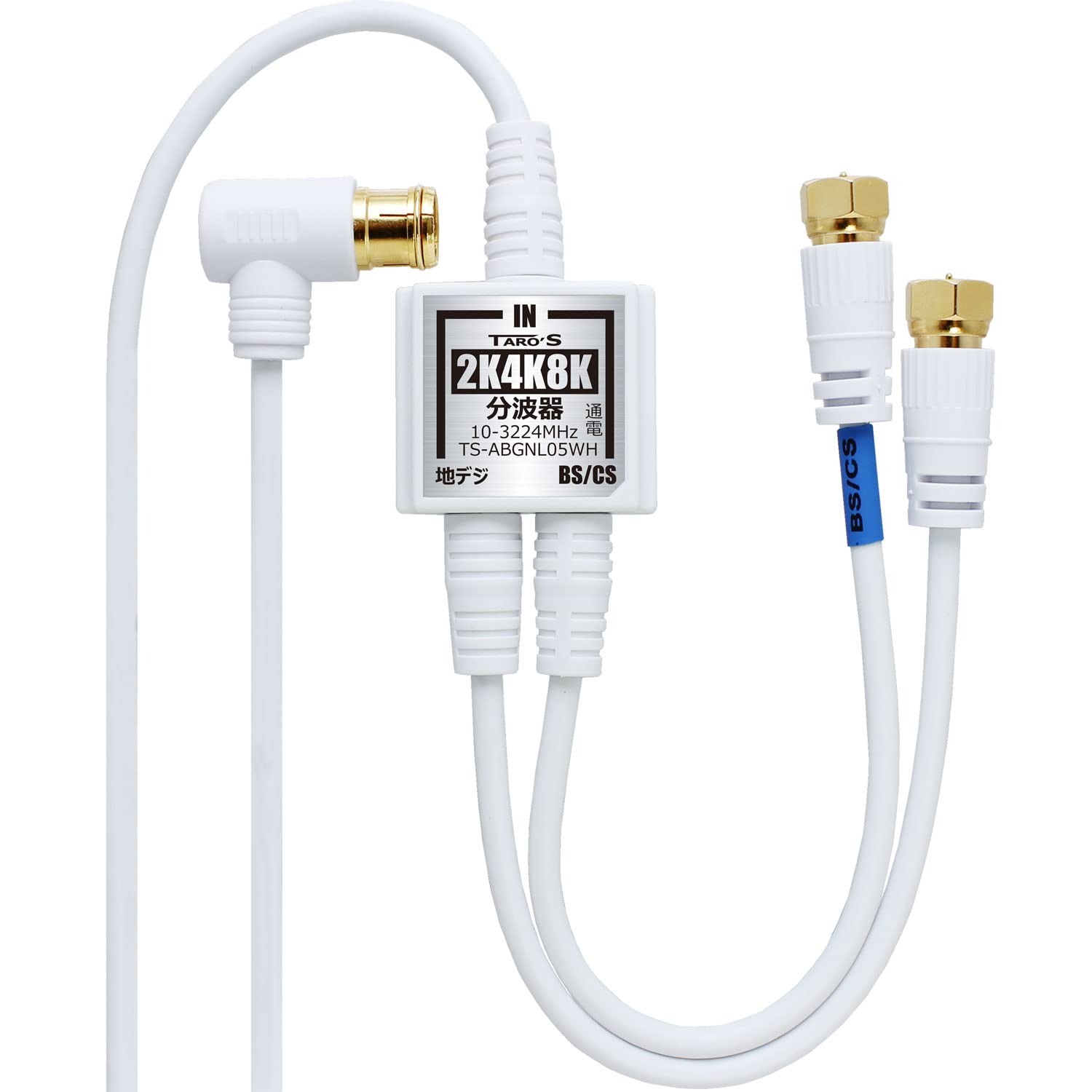TARO'S アンテナ分波器 入力/出力一体型ケーブル付き 4K8K放送(3224MHz)/BS/CS/地デジ/CATV 対応 2.5C-FBケーブル
