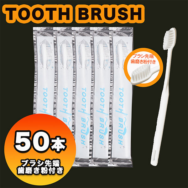 使い捨て歯ブラシ 先端歯磨き粉付き 50本 個包装 アメニティ ホテル 宿泊 温泉 旅館 旅行 出張 コンパクト