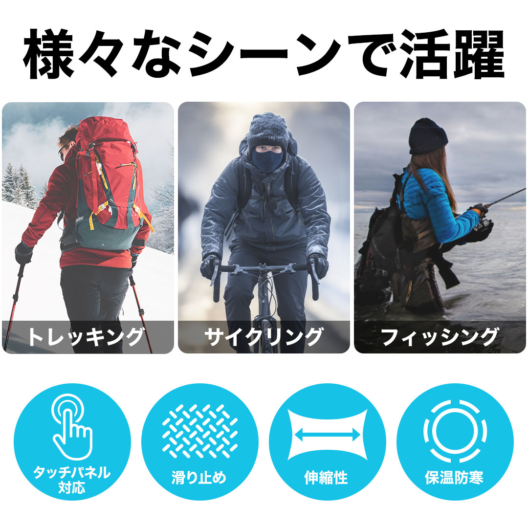 指先にはタッチパネル操作が可能な素材を採用し、機能性バツグン。