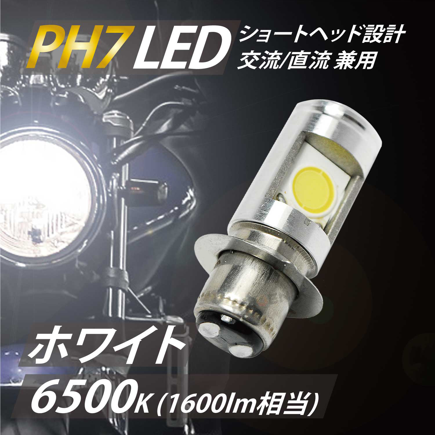 LED ヘッドライト バルブ ショートタイプ PH7 T19L Hi/Lo 12w 無極性設計 交流/直流 兼用 12 ~ 80V 1600lm 汎用