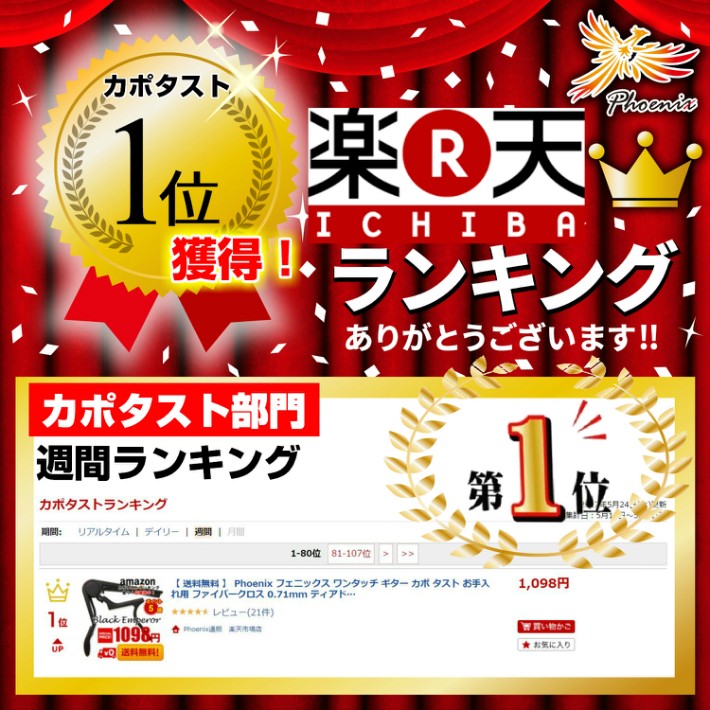 【Amazonベストセラー1位】カポタストを専門に取り扱うPhoenix社が、あなたの素晴らしいプレイのためにおススメしたい一品がこちらです!当製品は、ワンタッチで簡単に脱着可能で、なおかつ強力なグリップ力で全ての弦をしっかりと抑えられる、初心者から上級者の方にまで大満足頂ける自慢のカポタストです。ぜひ一度手に取り、使い心地を確かめてみて下さい。
