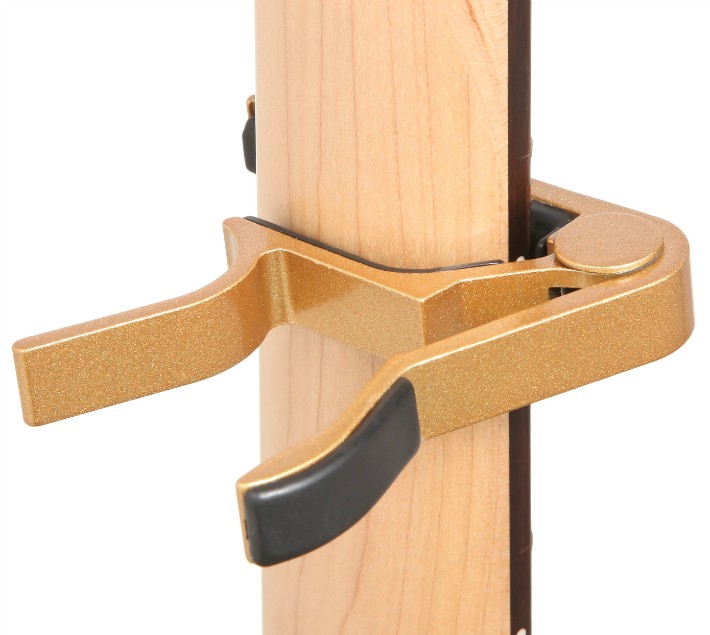 内蔵された強力なバネが、全ての弦をしっかりと押さえるので、いわゆる「音のビビり」が起きません。本来の音が鳴らなければ、もちろん演奏どころではないですよね。当製品のバツグンのホールド力が、カポタストの役割をしっかりと発揮します。