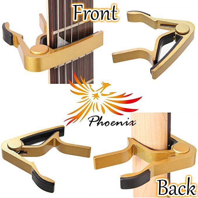 金色は高価の象徴!特別なものと認識させるカポタスト!金色は豊かな気持ちにさせてくれる効果があり、自分に対して自信を持てるようになります。なので!この金色のカポタストはオーディエンスに特別なものと認識させ、その印象は観客のノリにも影響を与えます。そしてそのオーディエンスの反応を感じたあなたは、自分のプレイに自信を付け、ワンランク上のギタープレイヤーとして成長するのです。このように、もはやカポタストは補助器具ではなく、ステージを彩る最高のスパイスなのです。