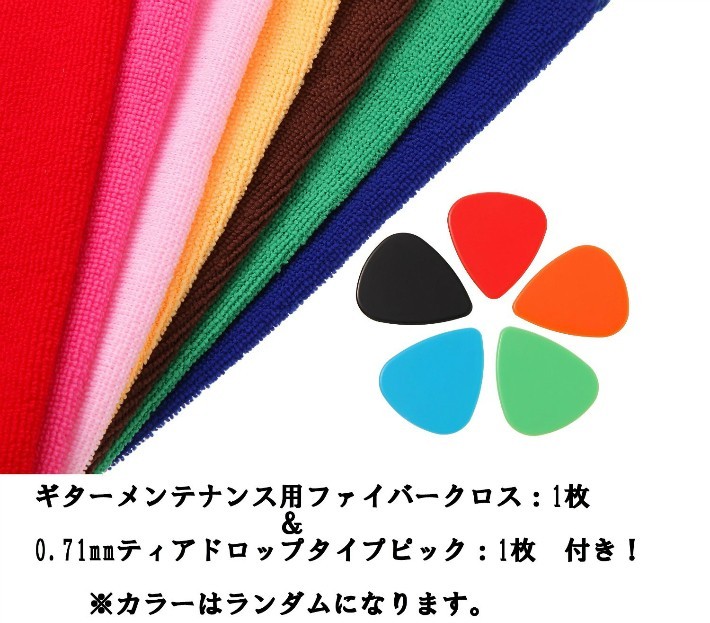 当店独自の45日間保証と付属品も!初期不良や故障の際は、お気軽にお問い合わせ下さい。スタッフが誠心誠意、迅速に対応致します。また、当製品やギターのメンテナンスに使えるファイバークロスに加え、プレイの際に欠かせないピックもお付け致します。どれも重宝して頂けると思いますよ♪(ピックとファイバークロスは1枚、色はランダムとなります)